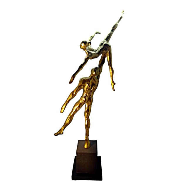 Estes lindos acrobatas na cor dourada na base vai ficar maravilhoso no seu ambiente, principalmente no seu aparador, home theater ou estante. As medidas são 18 cm de largura por 11 cm de profundidade e 52,3 cm de altura. Por ser uma peça imponente e com uma cor bem viva, esta peça dará todo um movimento diferenciado ao seu lar.