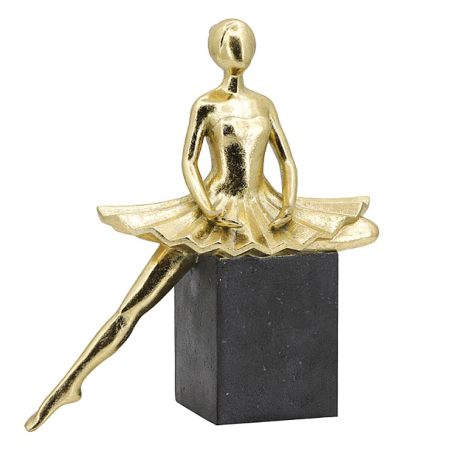 Quer ter uma peça diferenciada na sua casa? Então, esta bailarina é uma grande sugestão. Esta bailarina dourada em resina sentada na base também em resina é muito charmosa! Esta escultura ficará linda na sua mesa de centro, mesa lateral ou até mesmo na sua estante. A medida é 22,5 cm de largura por 10,5 cm de profundidade e 26 cm de altura. Você que gosta de ballet, não tem como não se apaixonar por esta linda bailarina. Temos outro modelo em tamanho maior. Confira!