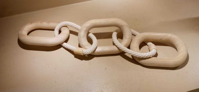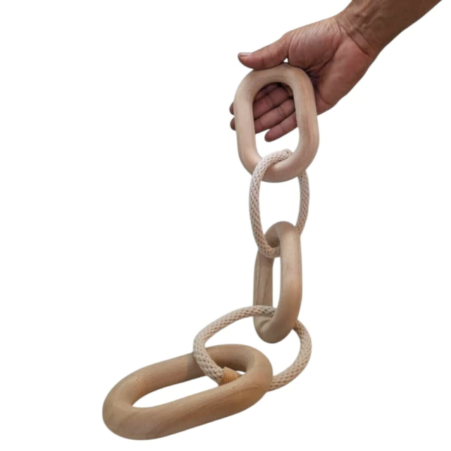 Dê um toque de personalidade e aconchego à sua decoração com este lindo Colar Decorativo de 59 cm de comprimento, feito com argolas em madeira e corda — uma combinação perfeita de rusticidade, elegância e estilo artesanal.