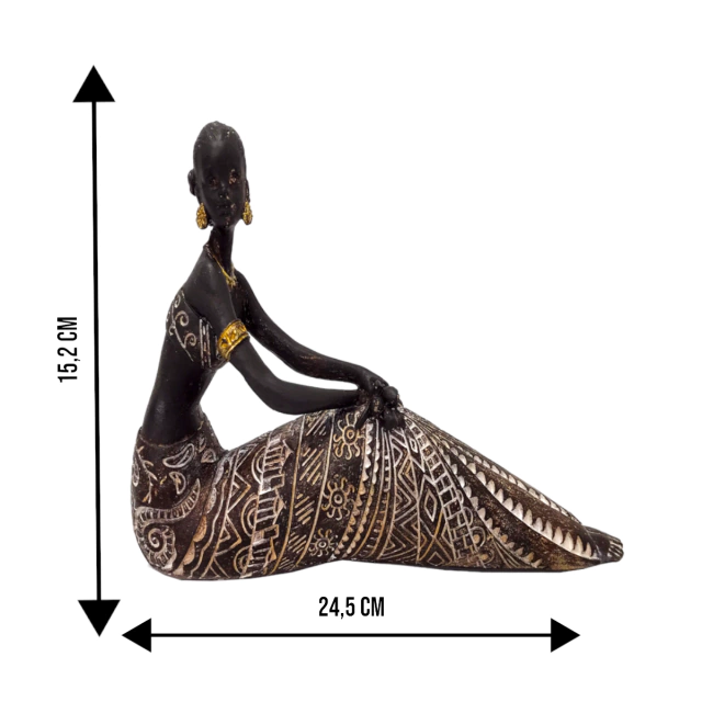 Esta deslumbrante Escultura Africana em Resina Sentada é muito mais do que uma simples peça decorativa - ela é uma obra de arte que ecoa a história e a tradição de um continente rico em cultura e beleza. Com seus 24,5 cm de comprimento, 5 cm de largura e 15,5 cm de altura, esta escultura emana uma aura de mistério e tradições, convidando você a explorar os segredos e significados entrelaçados em cada traço.