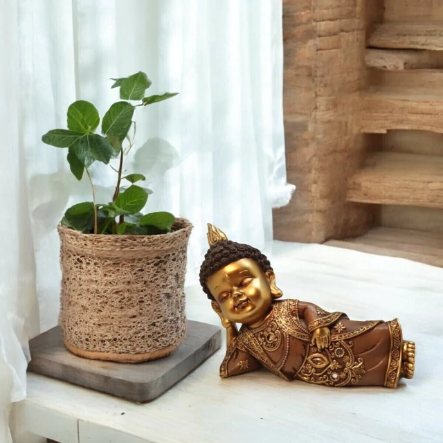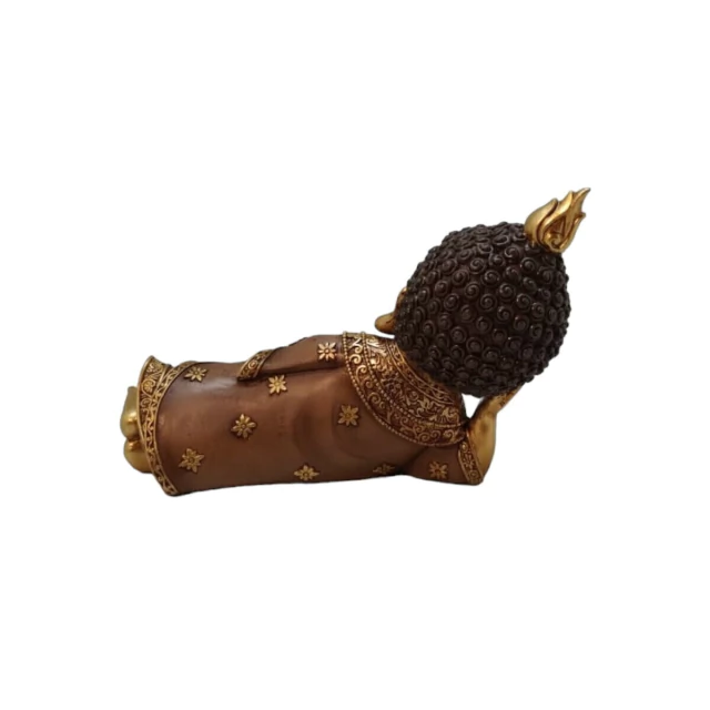 Este lindo Buda deitado em resina é um charme. Ficará lindo no seu ambiente trazendo leveza e espiritualidade. Esta linda peça mede 22 cm de largura, 8 cm de profundidade e 14,5 cm de altura. Esta peça vai cair feito uma luva no seu aparador, estante, home teather, mesa de centro ou mesa lateral. Temos também o par desta peça. Pode ser usado com o par ou não. Fica ao seu critério. Vai depender do seu gosto e do espaço que você tem no seu ambiente.
