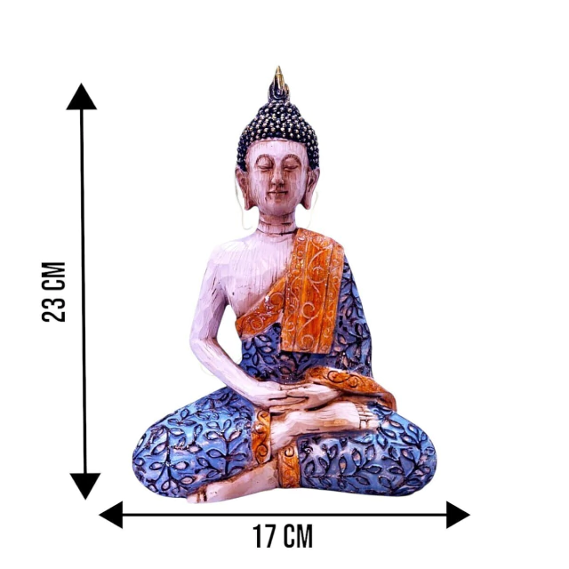 Buda em Resina - Azul & Coral - 23 cm de Altura - Elegância e Equilíbrio na Sua Decoração