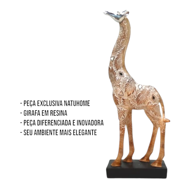 Desperte emoções profundas e simbolismo em seu ambiente com esta deslumbrante escultura de girafa em resina, meticulosamente trabalhada para exalar uma beleza atemporal.