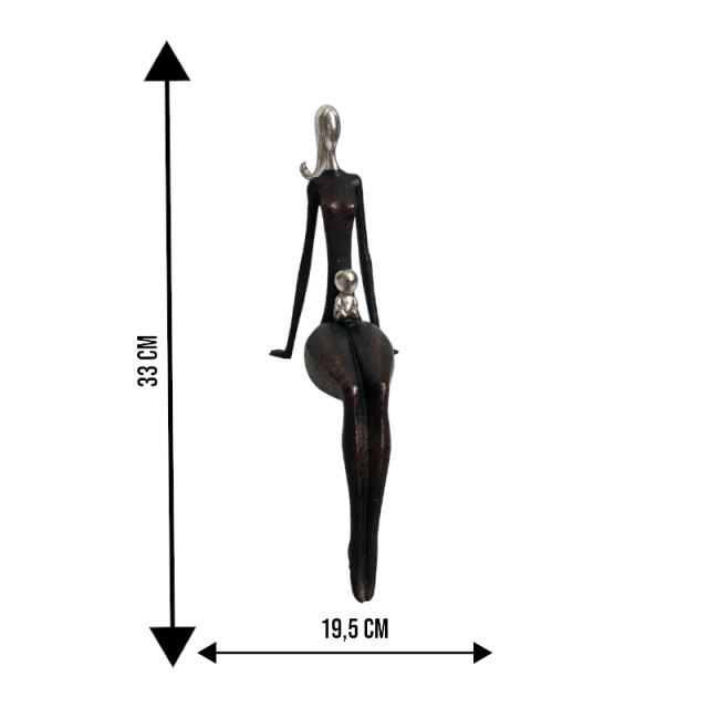 Mãe é para celebrar todos os dias! Esta linda mãe sentada com o seu bebê no colo em resina reflete todo o significado da palavra mãe. Com um estilo próprio e tons neutros, esta peça possui altura de 19,5 cm de altura, 11 cm de profundidade e 33 cm de largura. Fácil de combinar, esta escultura ficará lindo no seu home theater, estante ou aparador. É uma peça para deixar sentada na terminação do móvel de modo que as pernas ficam para fora. Não te como não se apaixonar...