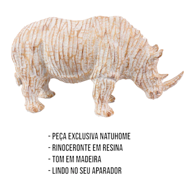 Deixe-se envolver pela robustez e pela singularidade do Rinoceronte em resina no tom de madeira, uma peça que emana uma aura de força. Com suas medidas marcantes de 13,5 cm de comprimento, 9 cm de largura e 21,5 cm de altura, esta escultura se destaca como um símbolo de poder.