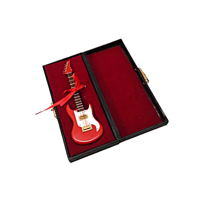 Esta linda réplica de guitarra de 12 cm vem com uma caixa de couro preto com interior vermelho aveludado. Para quem gosta de musica é um ótimo presente. Ou para aquele seu cantinho musical, esta peça clássica nas cores vermelha e branca vai deixar este seu ambiente ainda mais cool.