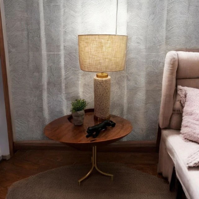 Linda luminária em ceramica com cor pedra. Fácil de combinar. Elegante, singular e sofisticada, vai deixar a sua casa ainda mais bonita!