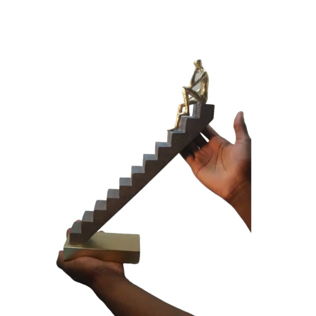 Este pensador no alto da escada contemplando a vida é algo surreal. Toda em resina, esta peça mede 37,3 cm de altura, 7,4 cm de profundidade e 28 cm de largura. Para presentear aquele (a) amigo (a) que você acha brilhante ou na decoração da sua casa, esta peça não tem como não ficar linda no seu aparador, home ou mesa lateral. Com design único e exclusivo, o ambiente que você escolher, esta escultura vai ficar maravilhosa!