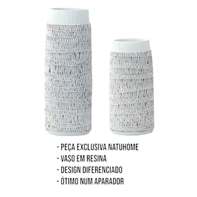 Imaginamos esses vasos em resina, com seu estilo rústico e nuances branco-bege, adornando com simplicidade refinada seu home theater, aparador ou estante. Cada detalhe pensado e a estética campestre transmite uma sensação de aconchego e naturalidade, adicionando um toque de conforto e rusticidade ao seu ambiente.